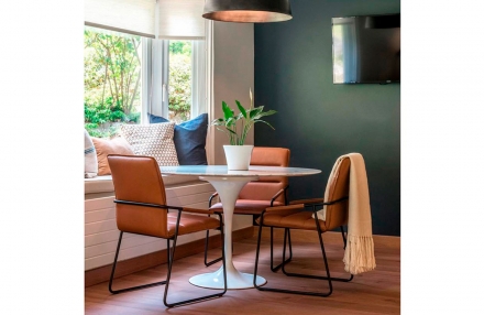 El diseño realmente elegante incorpora una funcionalidad de primera clase en una forma simple y ordenada” David Lewis. Un clásico del diseño industrial, la Mesa Tulip, diseñada por el finlandés Eero Sarinen, se transformó en una mesa extremadamente versátil que encaja en cualquier estilo que puede combinarse con diferentes sillas tanto en el comedor, como en la cocina u oficina. Actualmente puedes encontrar la Mesa Tulip en distintos tamaños y formas, en este caso la Mesa Tulip Mármol tiene una forma circular y es perfecta para utilizar en tu oficina en una sala de reuniones iluminando ese toque de modernidad o como también en el comedor de tu casa brindando elegancia al lugar. La Mesa Tulip Mármol 100 cm, está fabricada con una forma de pedestal, hecha en acero y con una superficie de mármol, es una brisa fresca de materiales conservadores y diseño innovador. ImportClub ofrece una reproducción fiel y de alta calidad a bajo costo.